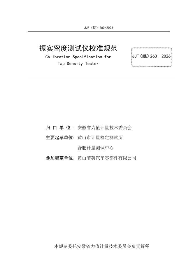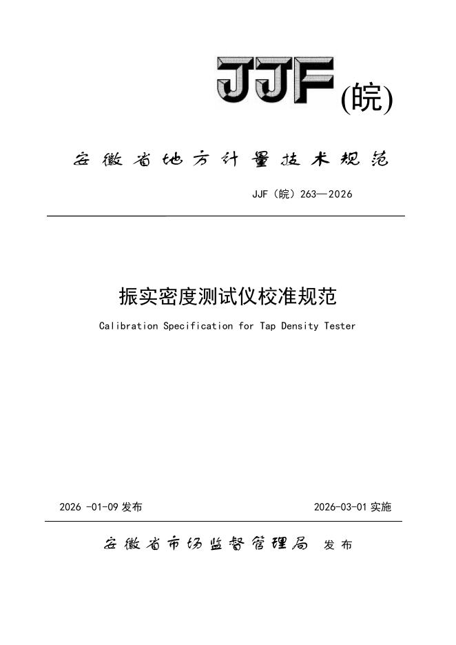 JJF(皖)263-2026 振实密度测试仪校准规范