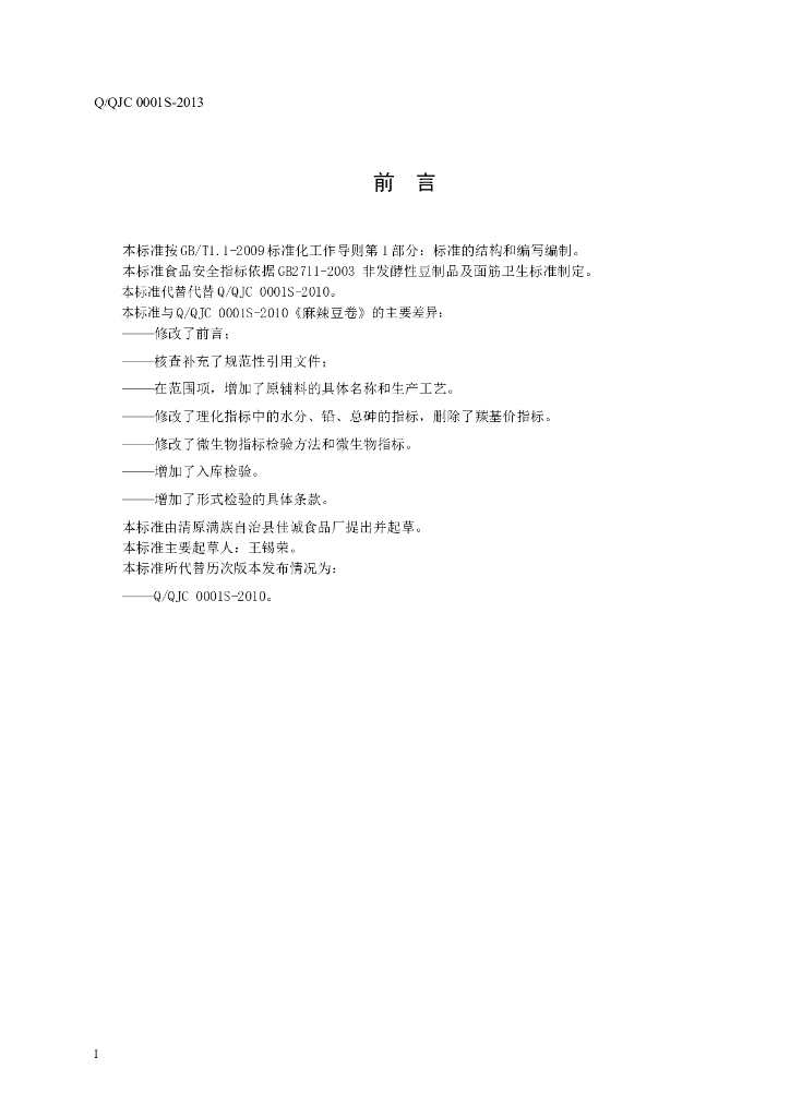 Q/QJC 0001S-2013 清原满族自治县佳诚食品厂 麻辣豆卷