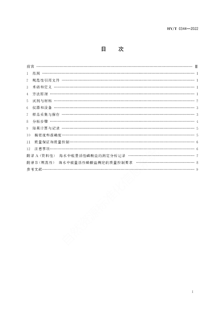 HY/T 0344-2022 海水中痕量活性磷酸盐的测定 流动分析-磷钼蓝固相萃取-分光光度法