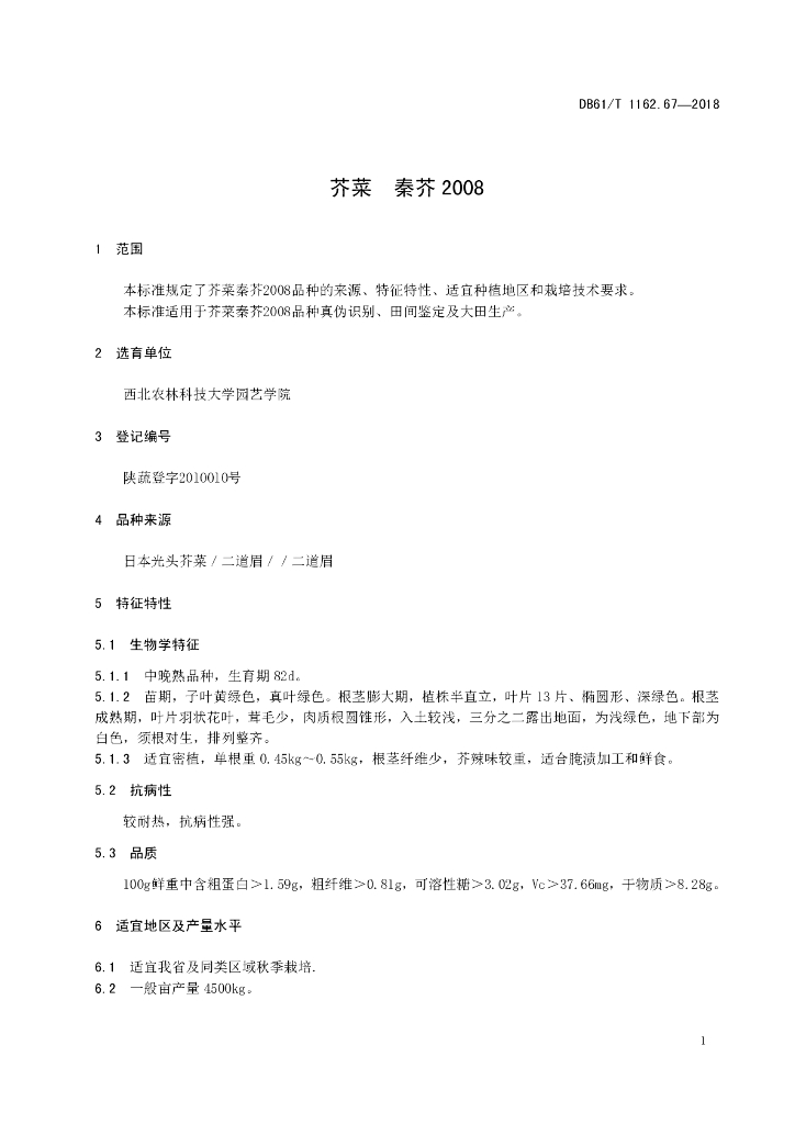 DB61/T 1162.67-2018 芥菜 秦芥2008