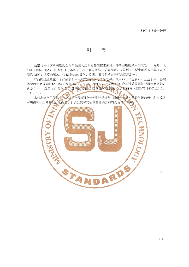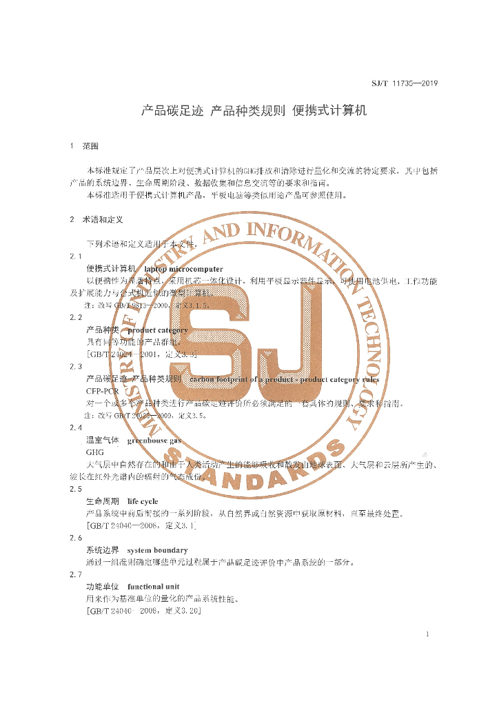 SJ/T 11735-2019 产品碳足迹 产品种类规则 便携式计算机