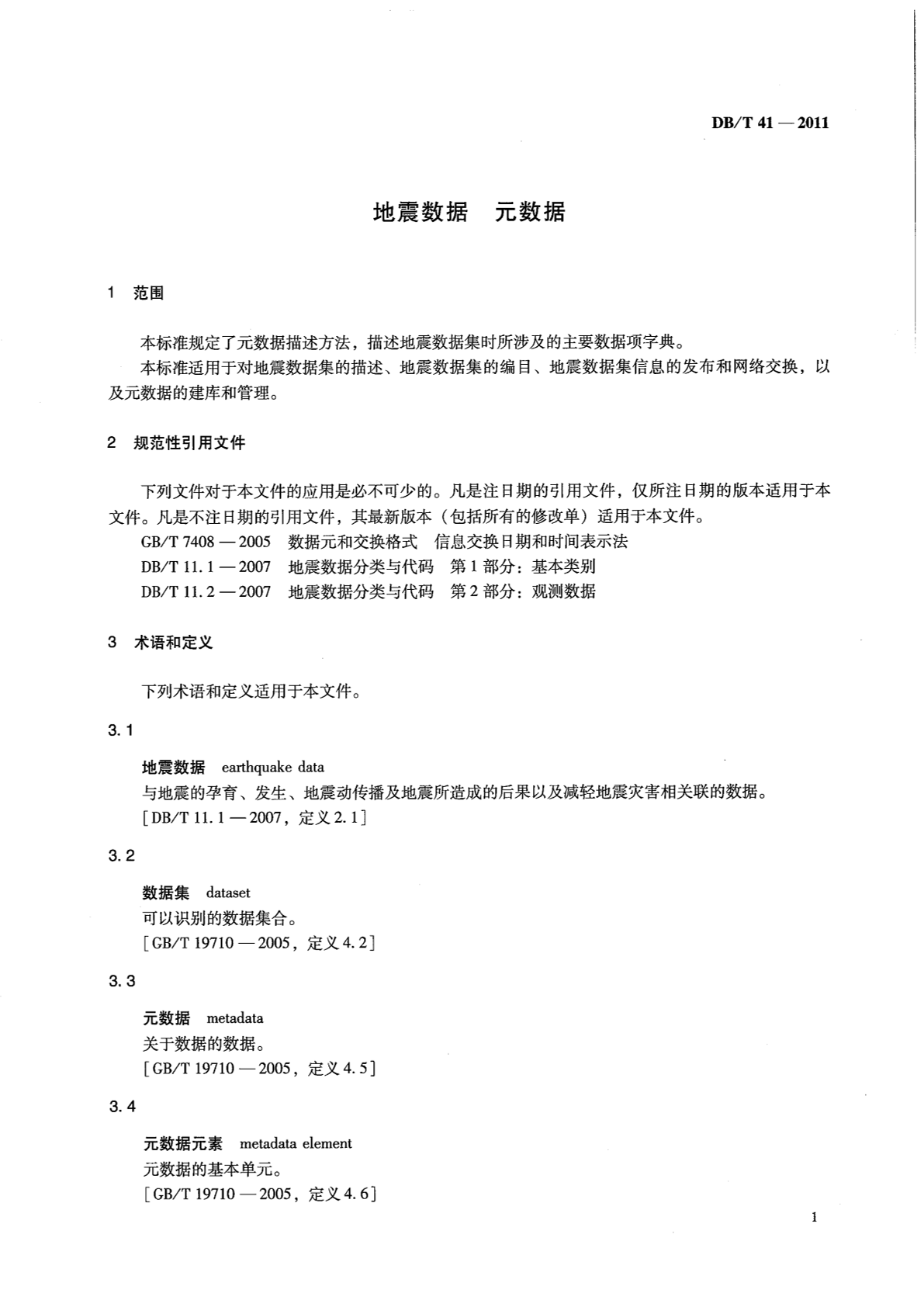 DB/T 41-2011 地震数据 元数据