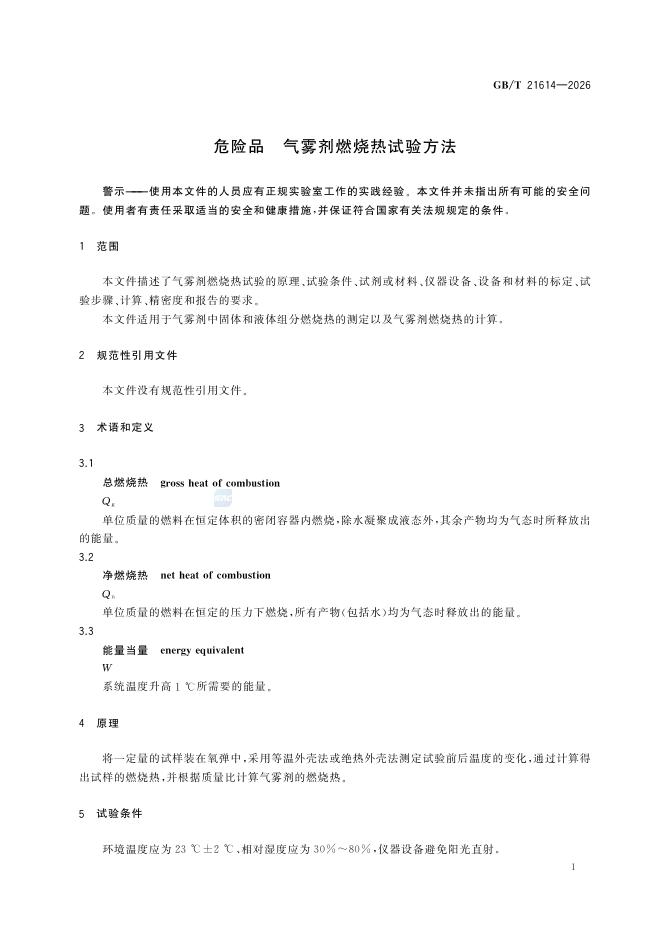 GB/T 21614-2026 危险品 气雾剂燃烧热试验方法