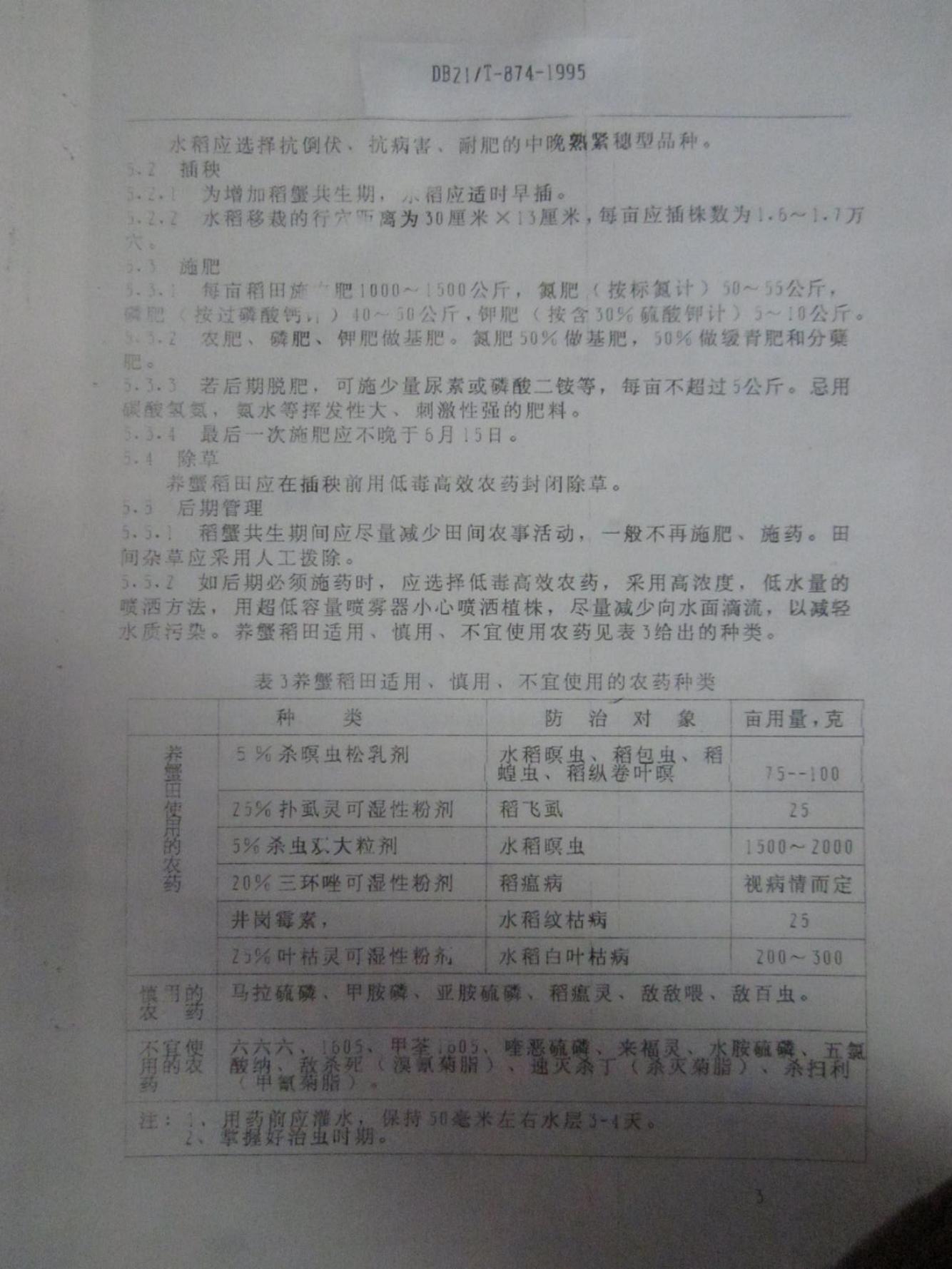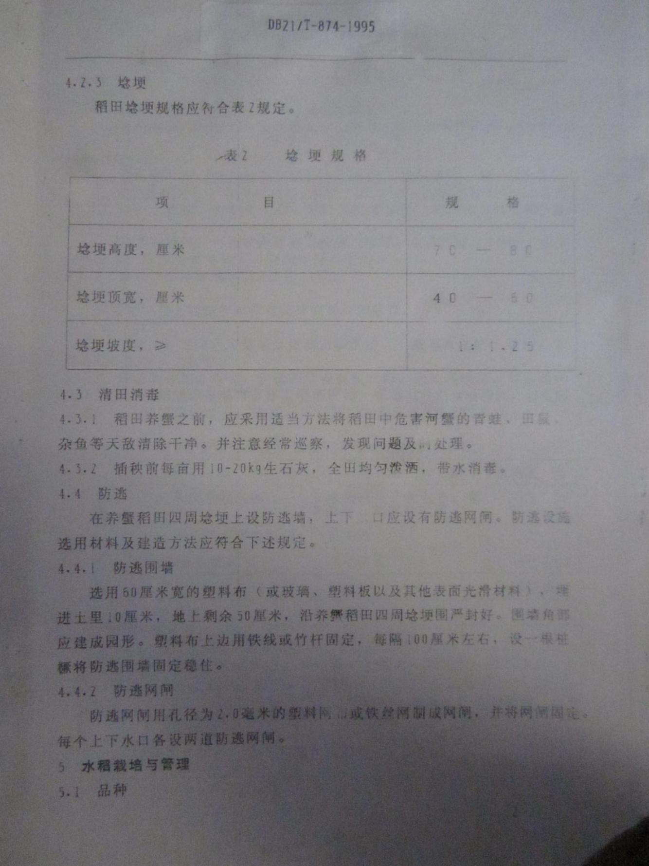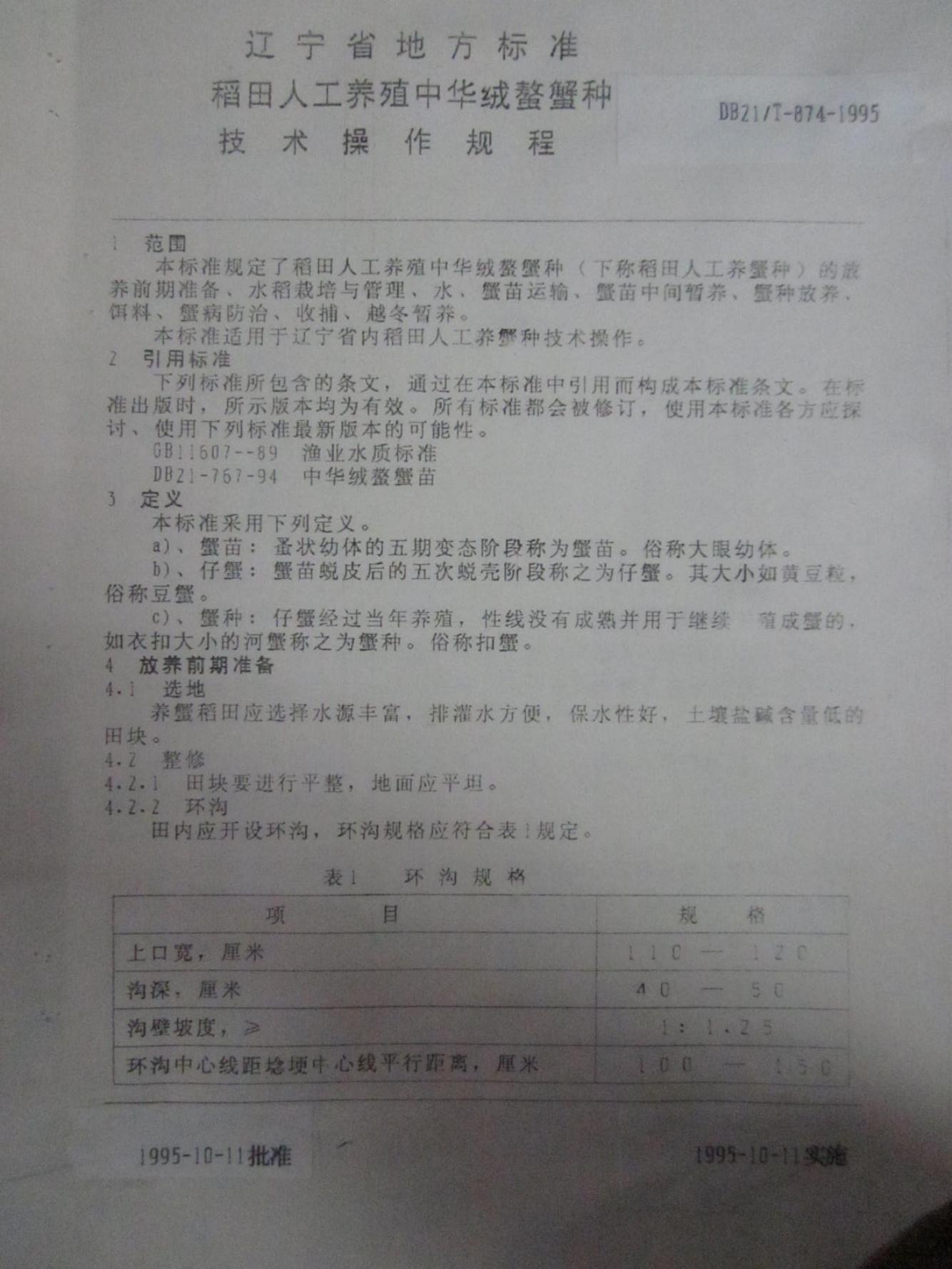 DB21/T 874-1995 稻田人工养殖中华绒螯蟹种技术操作规程