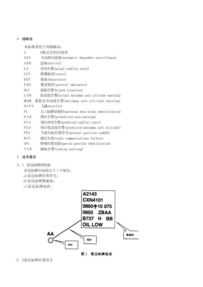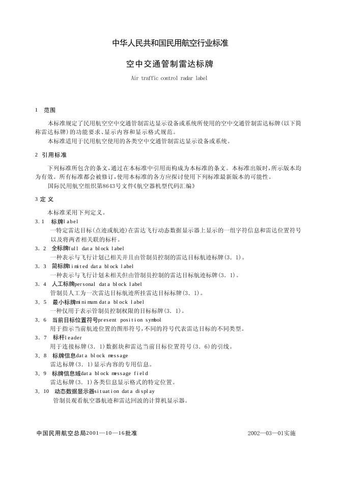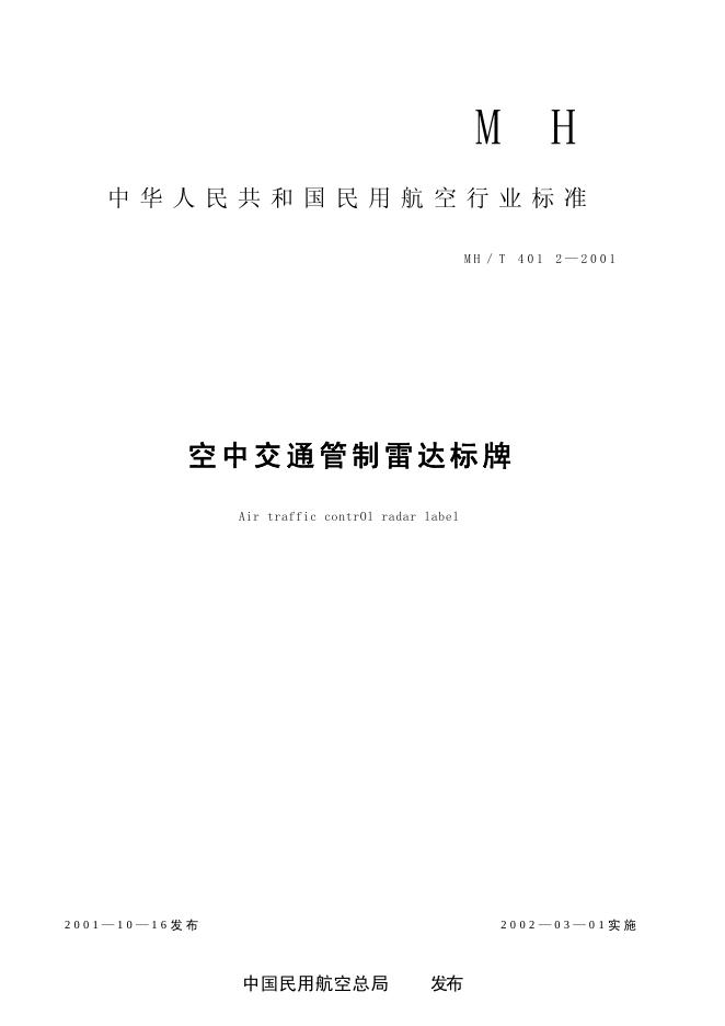 MH/T 4012-2001 空中交通管制雷达标牌
