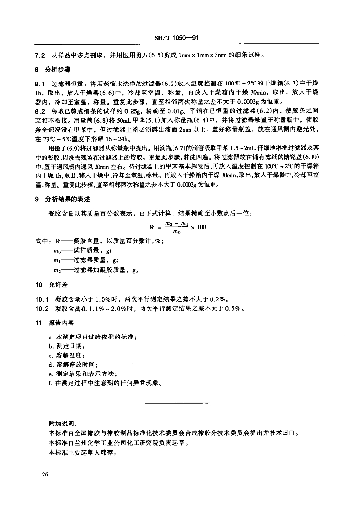 SH/T 1050-1991 合成生胶凝胶含量的测定