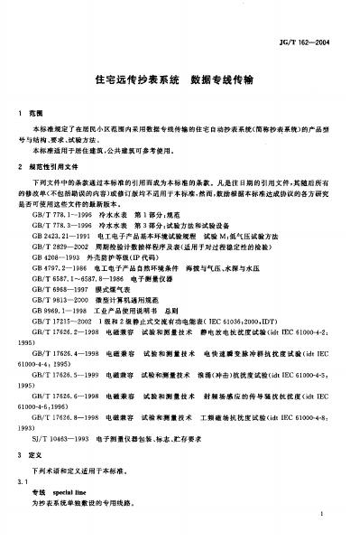 JG/T 162-2004 住宅远传抄表系统 数据专线传输