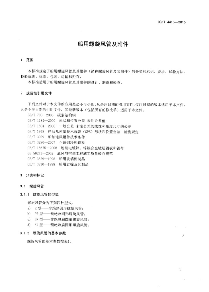 CB/T 4415-2015 船用螺旋风管及附件