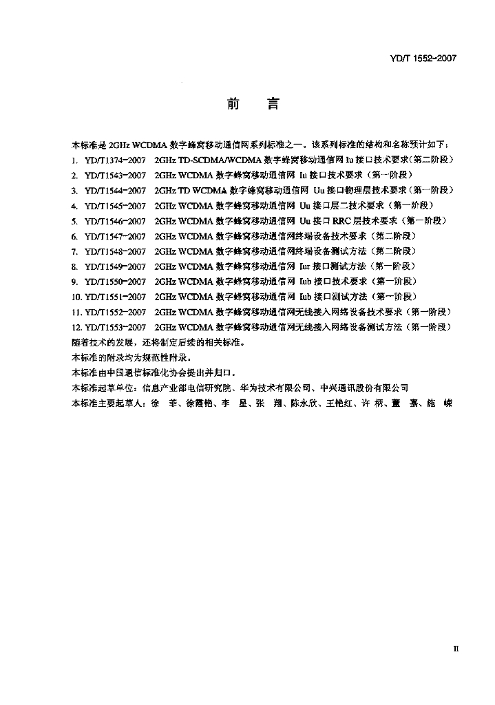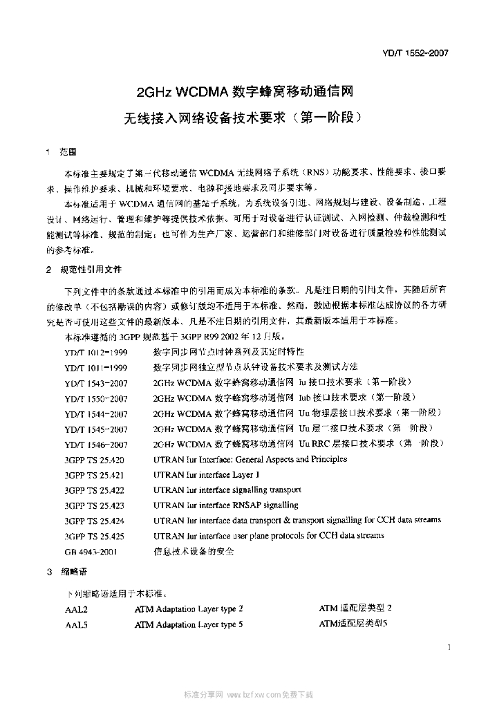 YD/T 1552-2007 2GHz WCDMA 数字蜂窝移动通信网无线接入网络设备技术要求(第一阶段)