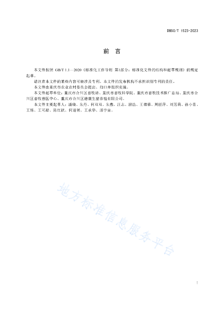 重庆市合川区畜牧站、重庆市畜牧科学院、重庆市畜牧技术推广总站、重庆市合川区畜牧兽医中心、重庆市合川区德康生猪养殖有限公司