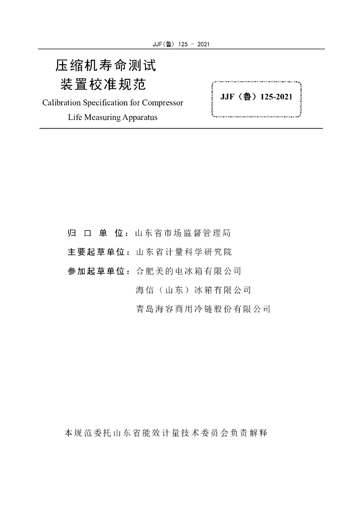 JJF(鲁)125-2021 压缩机寿命测试装置校准规范