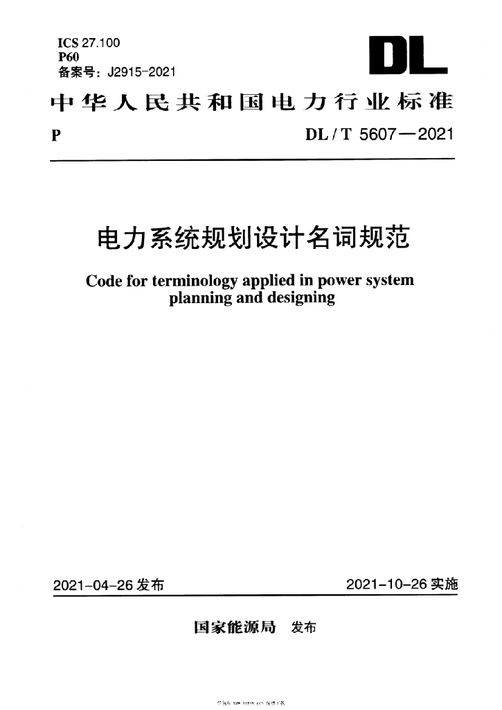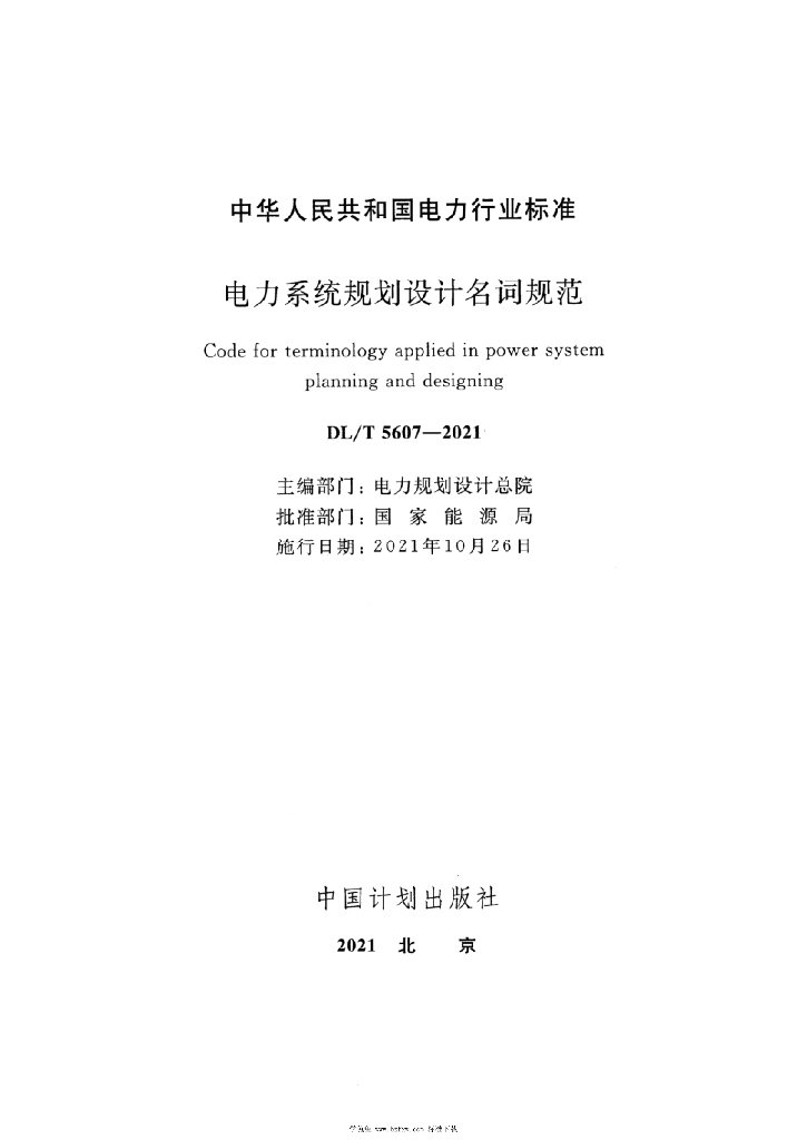 DL/T 5607-2021 电力系统规划设计名词规范