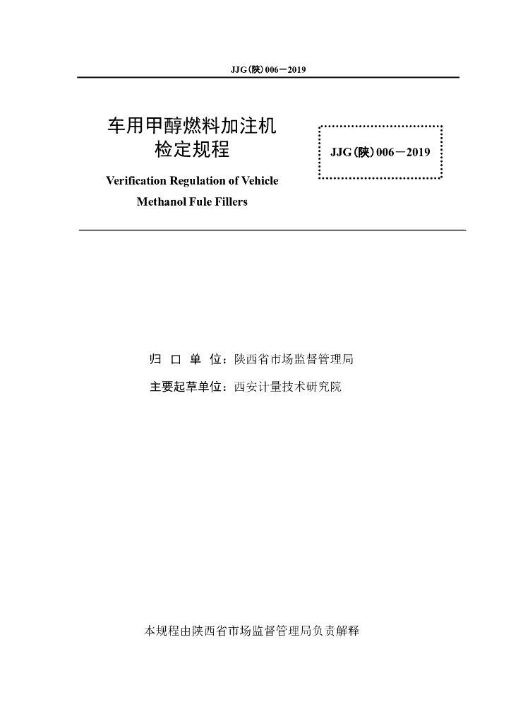 JJG(陕)006-2019 车用甲醇燃料加注机