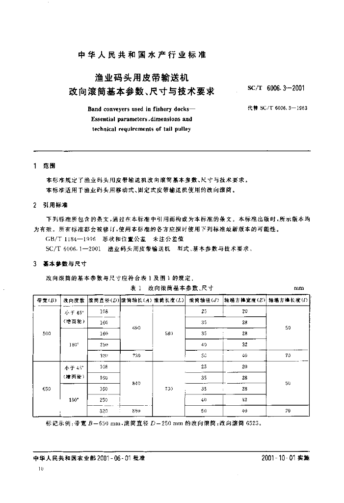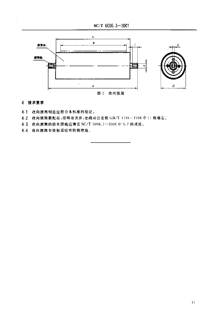 SC/T 6006.3-2001 渔业码头用皮带输送机 改向滚筒基本参数、尺寸与技术要求