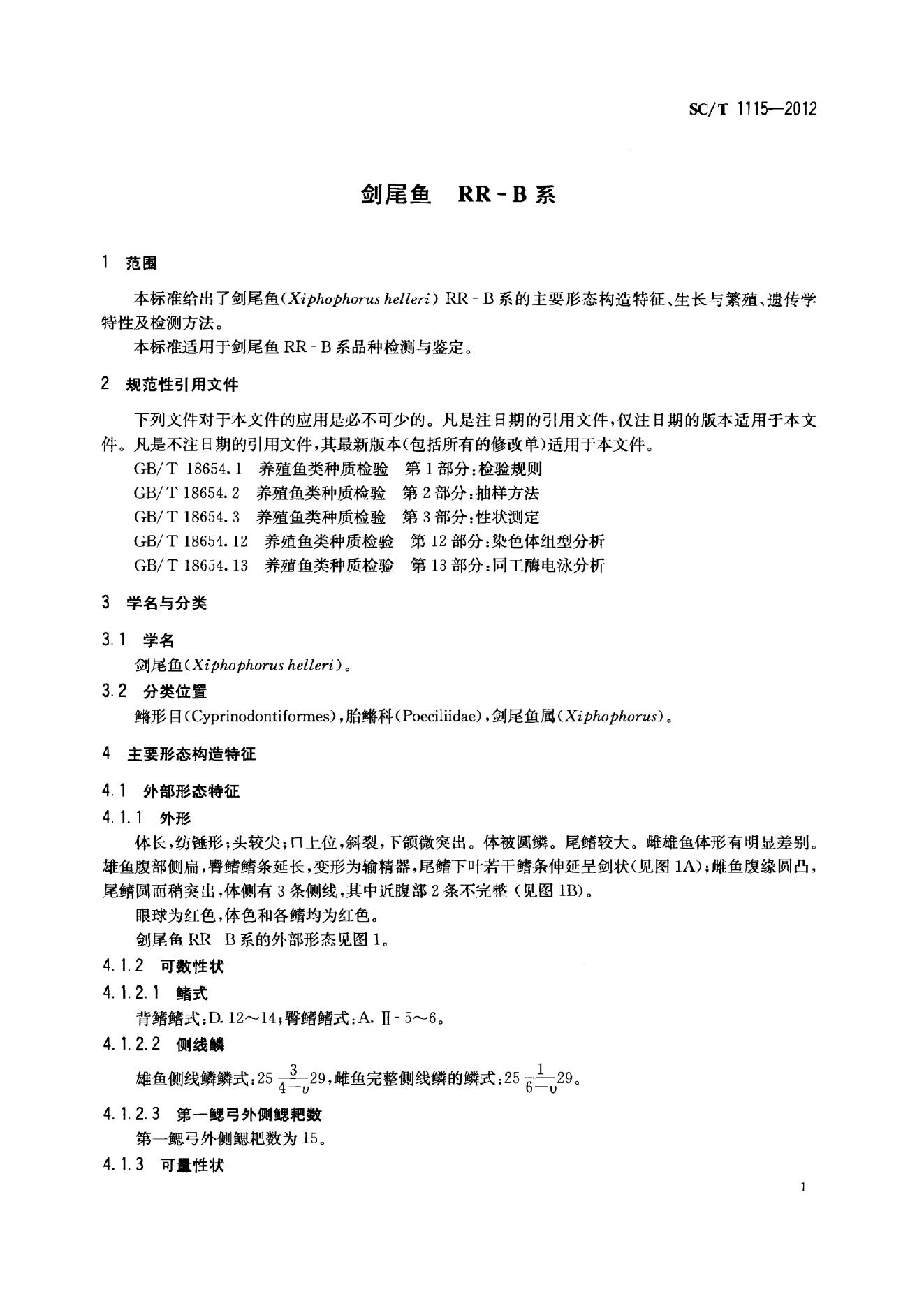 SC/T 1115-2012 剑尾鱼 RR-B系