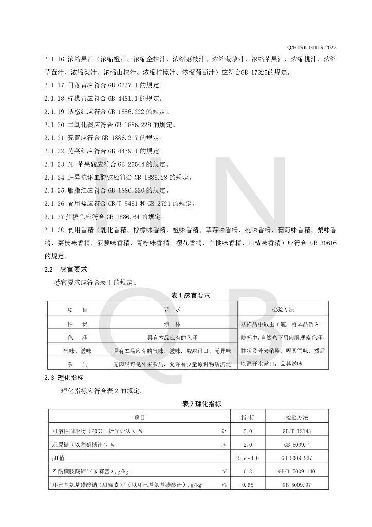 Q/HTSK 0011S-2022 葡萄糖果汁气泡风味饮料