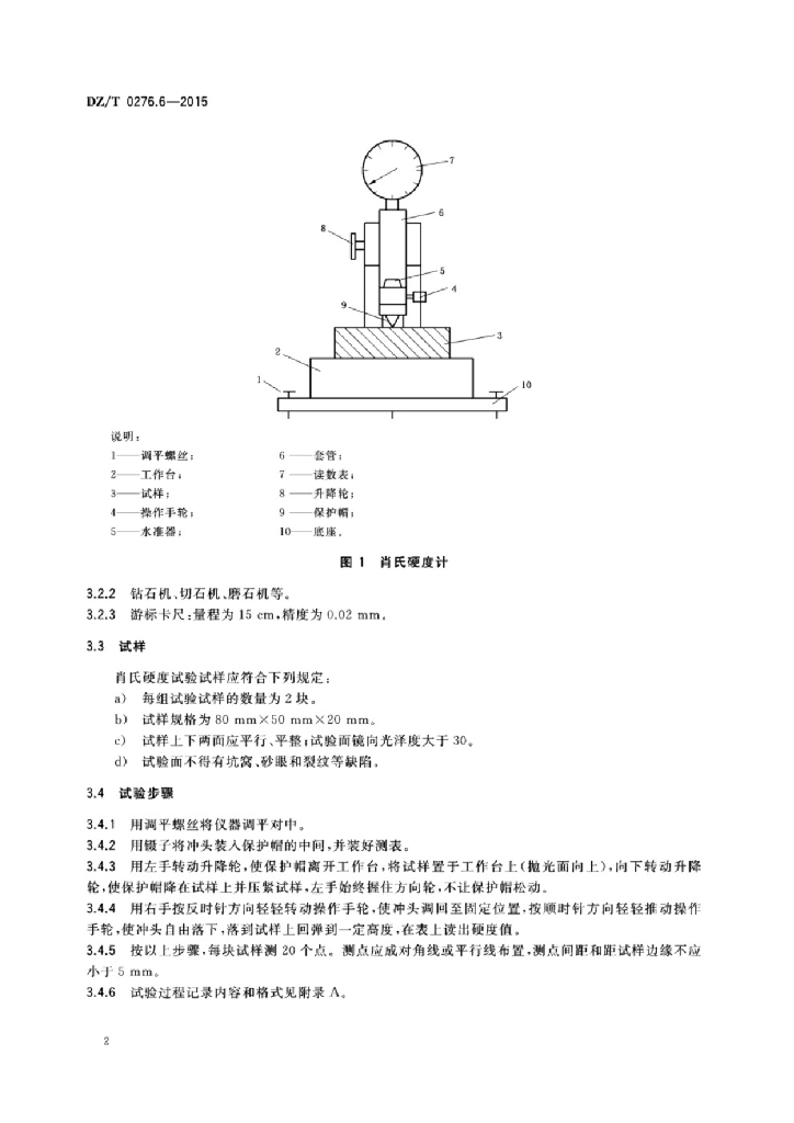 DZ/T 0276.6-2015 岩石物理力学性质试验规程 第6部分:岩石硬度试验