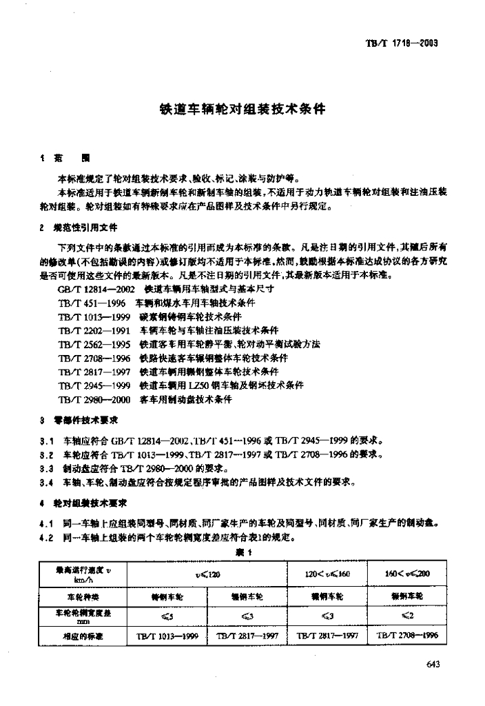 TB/T 1718-2003 铁道车辆轮对组装技术条件