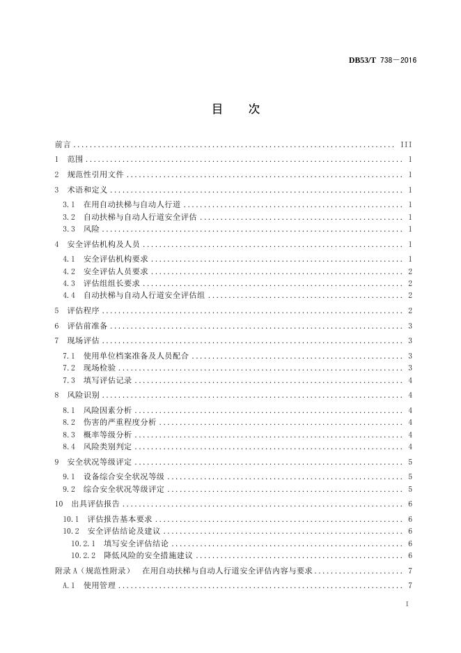 DB53/T 738-2016 在用自动扶梯与自动人行道安全评估规则