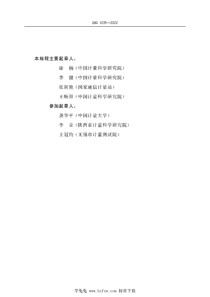 徐楠(中国计量科学研究院)、李健(中国计量科学研究院)、张颖艳(国家通信计量站)、王肠阳(中国计量科学研究院)、龚华平(中国计量大学)、李荣(陕西省计量科学研究院)、王冠钧(无锡市计量测试院)