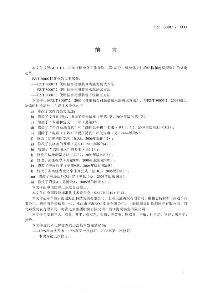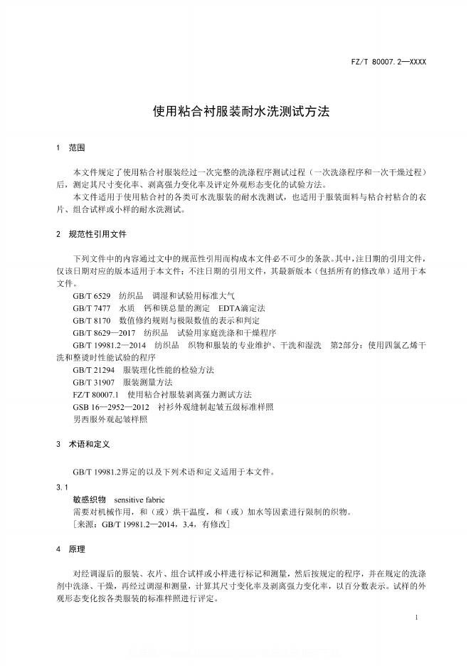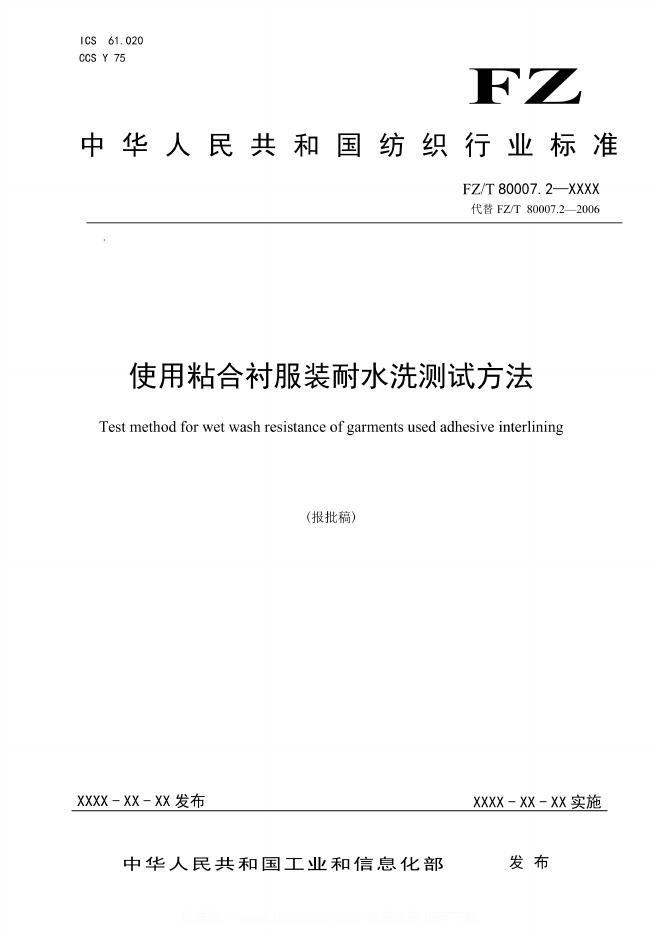 FZ/T 80007.2-2023 使用粘合衬服装耐水洗测试方法