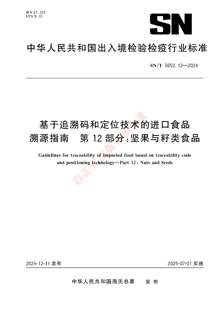 SN/T 5652.12-2024 基于追溯码和定位技术的进口食品溯源指南 第12部分:坚果与籽类食品