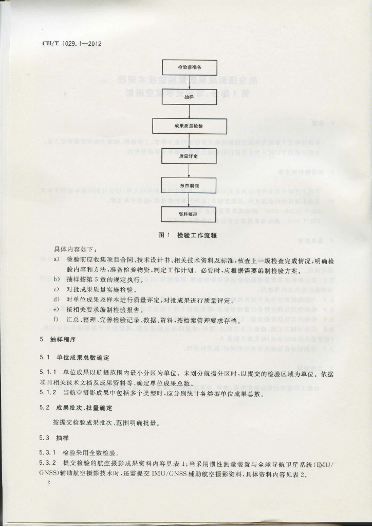 CH/T 1029.1-2012 航空摄影成果质量检验技术规程 第1部分:常规光学航空摄影