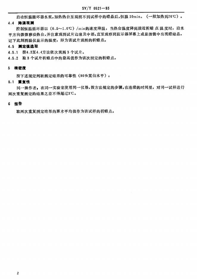 SY/T 0521-1993 原油析蜡点测定 显微观测法