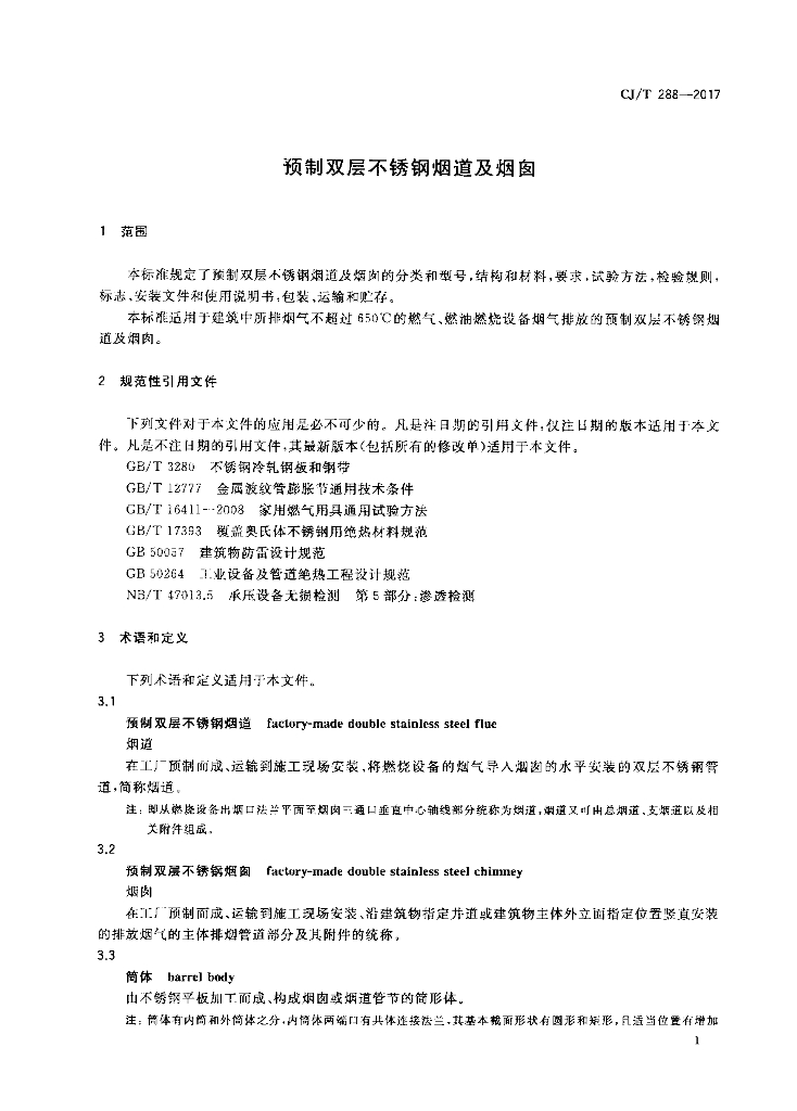 CJ/T 288-2017 预制双层不锈钢烟道及烟囱