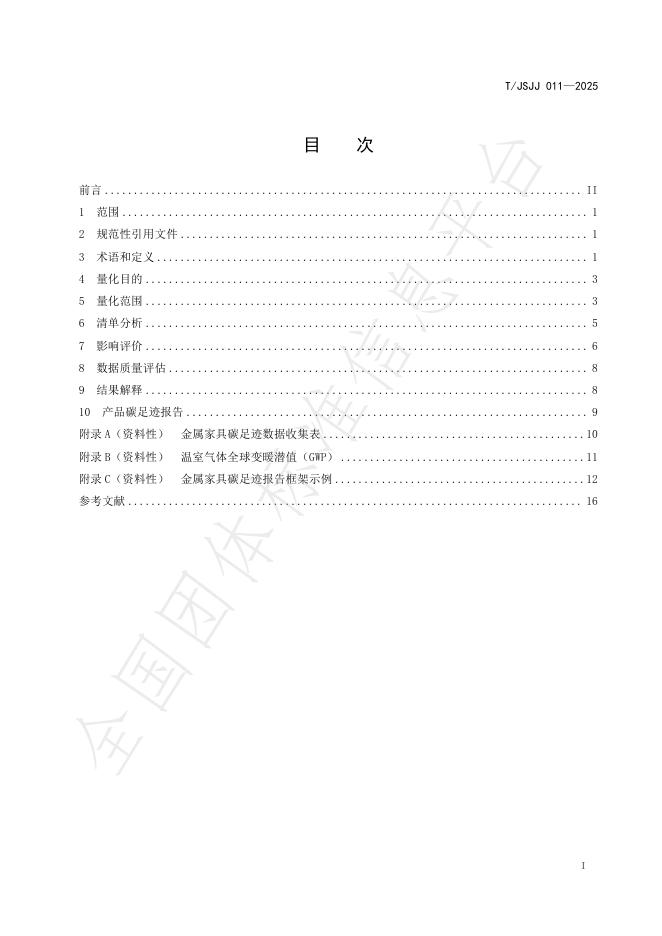 T/JSJJ 011-2025 温室气体 产品碳足迹量化方法与要求 金属家具