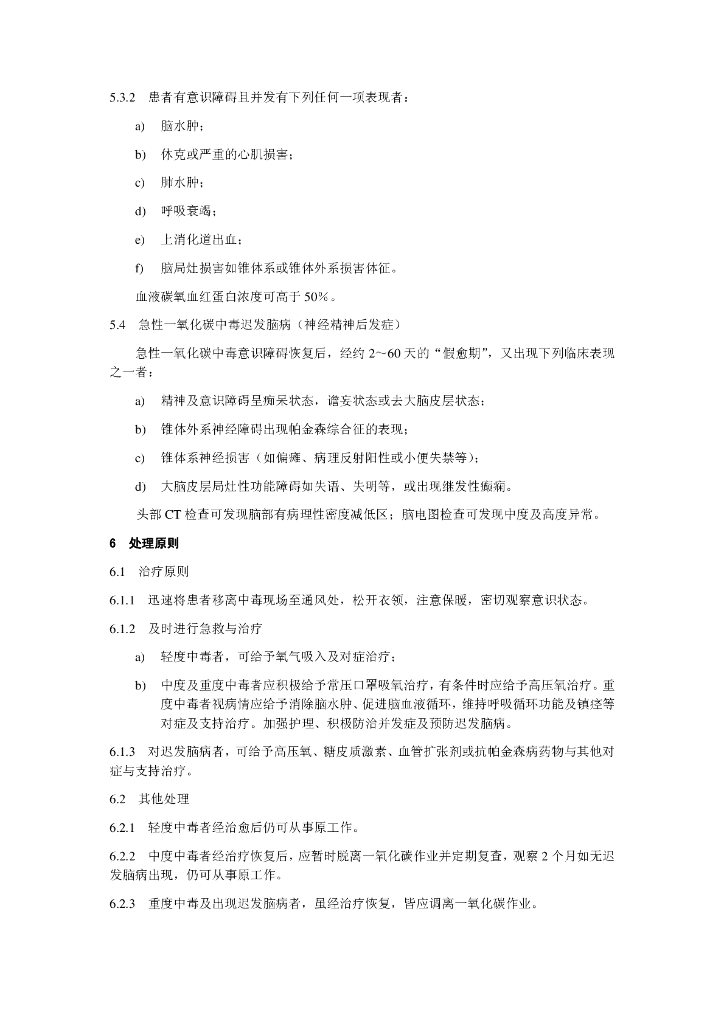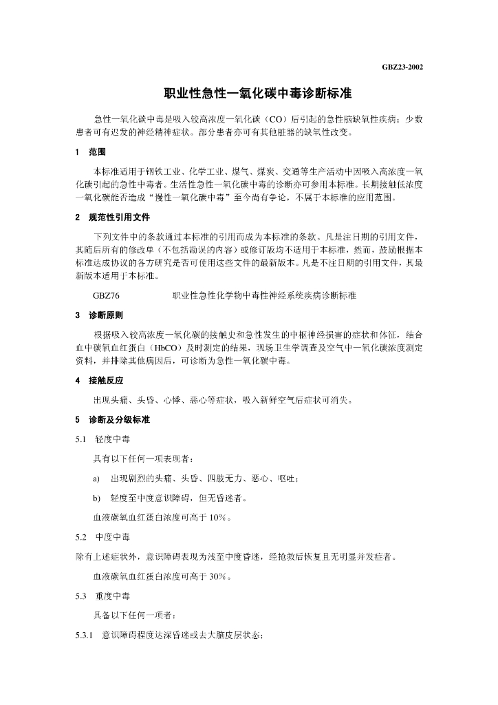 GBZ 23-2002 职业性急性一氧化碳中毒诊断标准