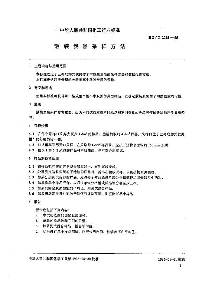 HG/T 2725-1995 散装炭黑采样方法
