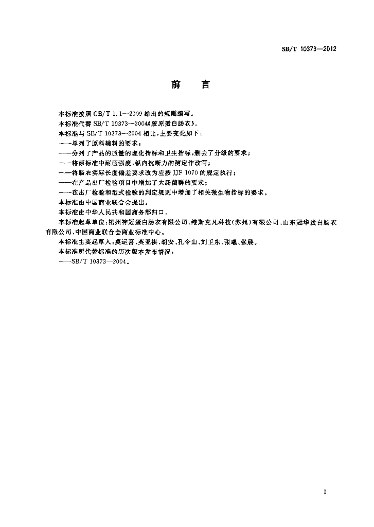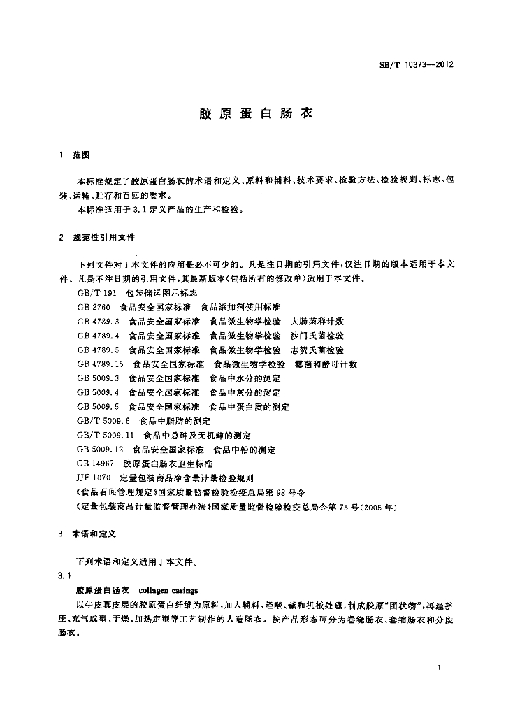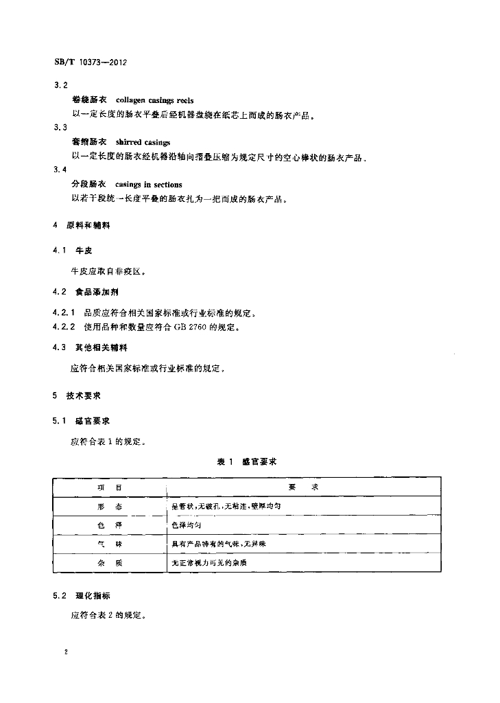 SB/T 10373-2012 胶原蛋白肠衣