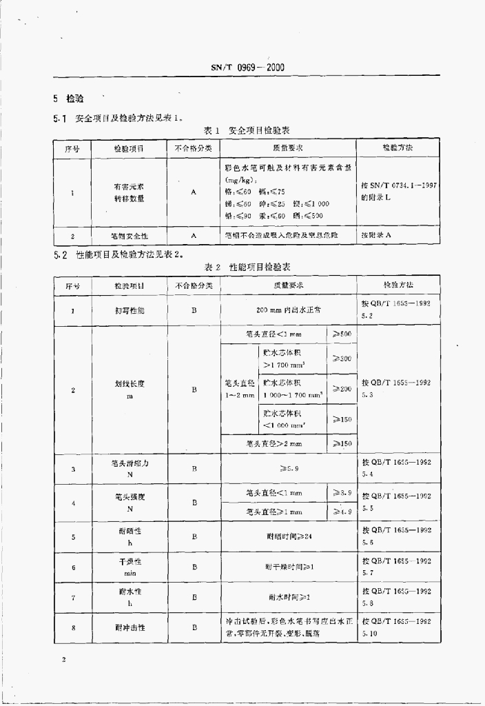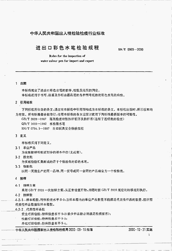 SN/T 0969-2000 进出口彩色水笔检验规程