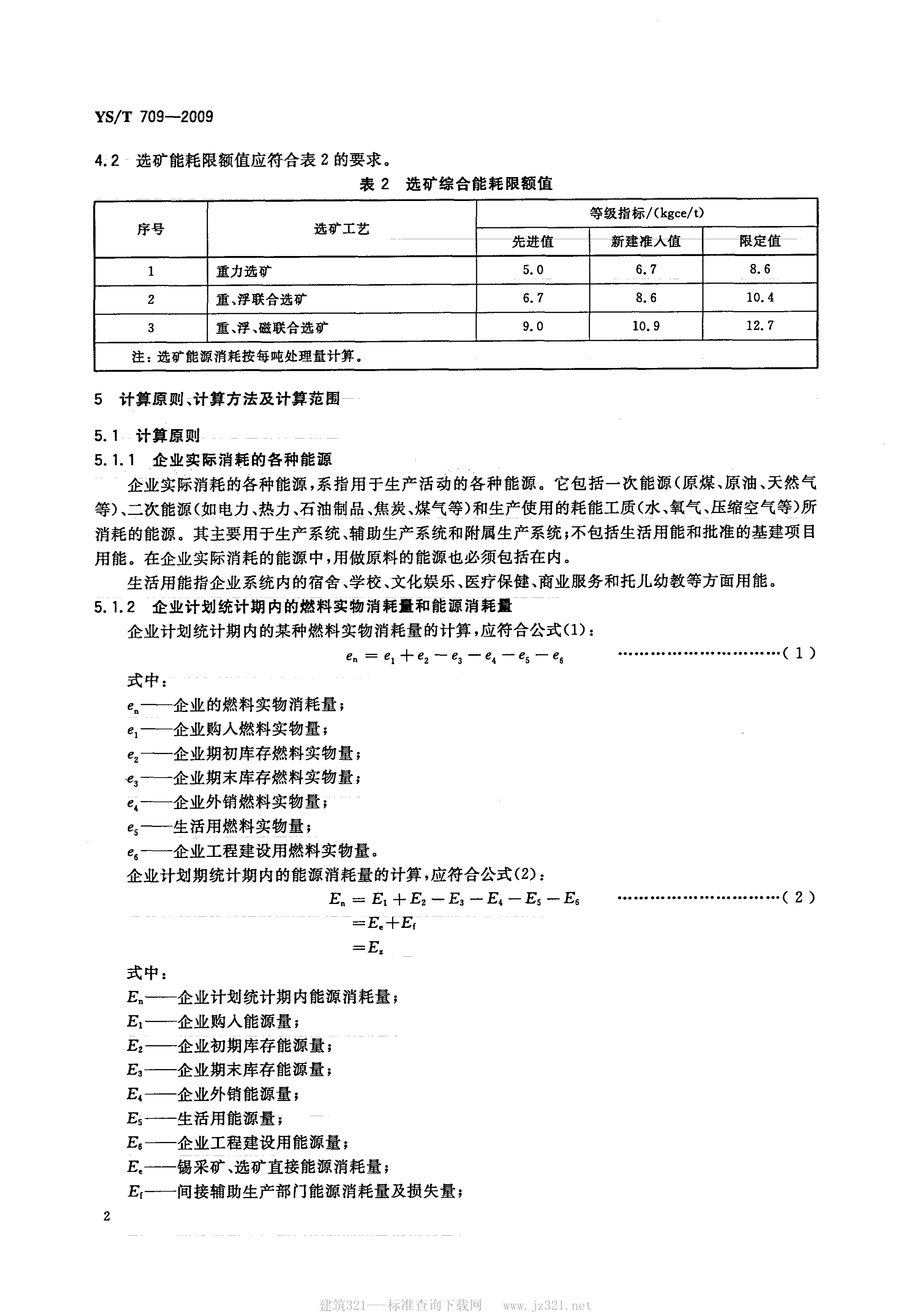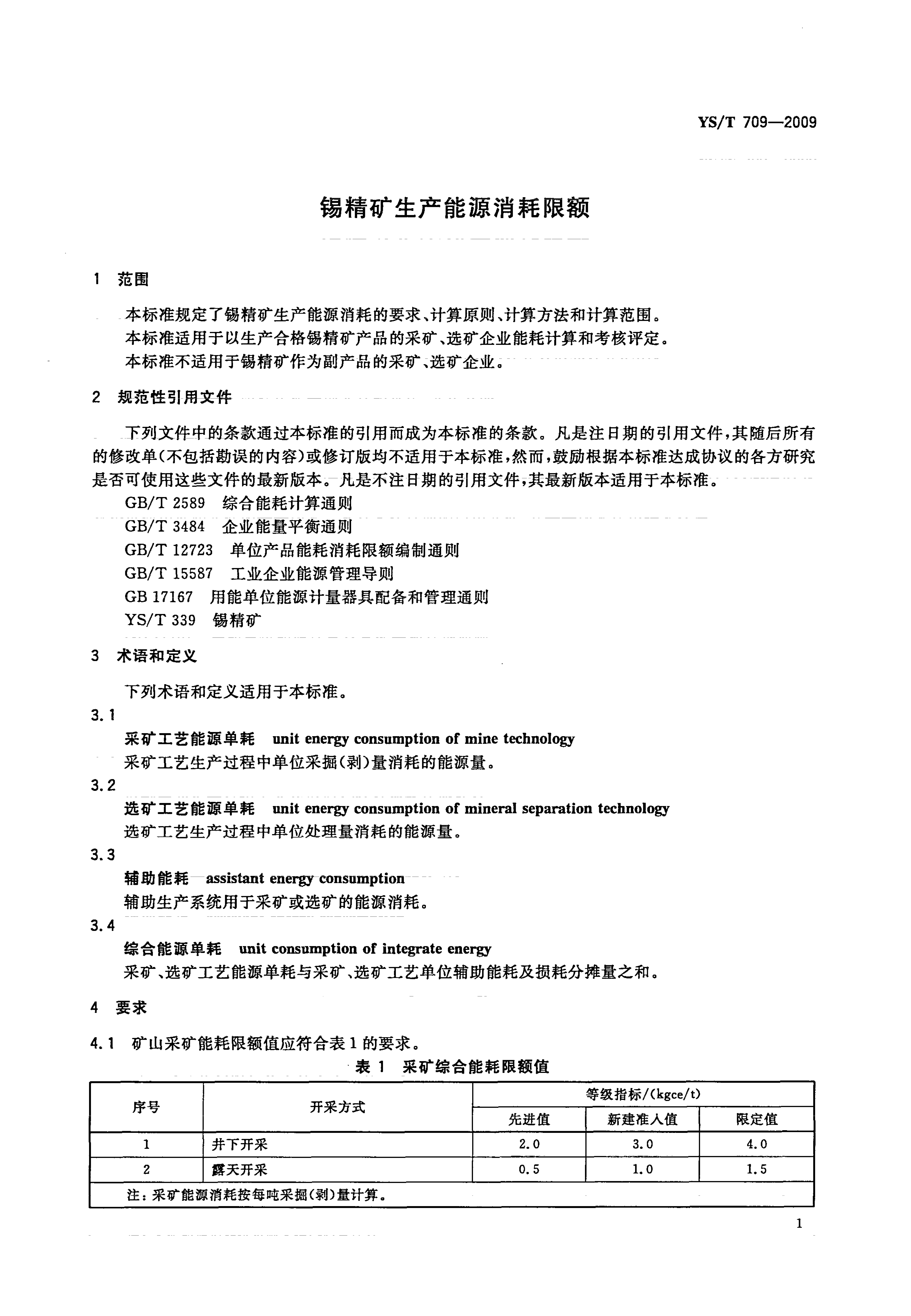 YS/T 709-2009 锡精矿生产能源消耗限额