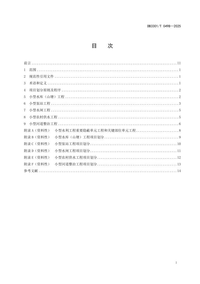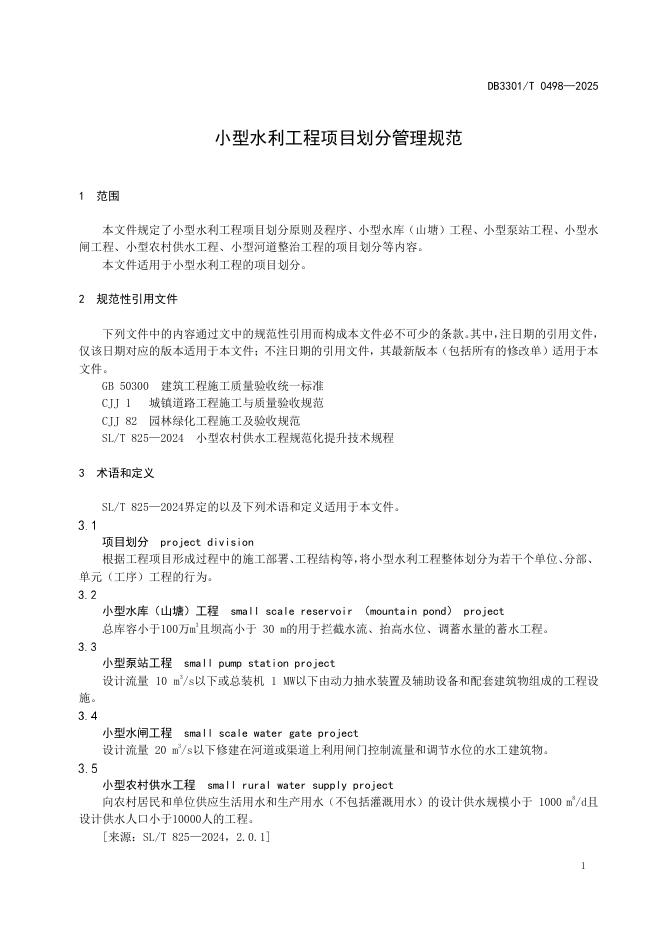 DB3301/T 0498-2025 小型水利工程项目划分管理规范