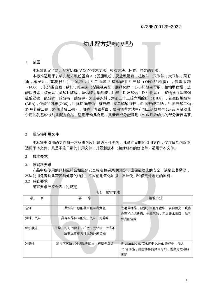 Q/SNBZ 0012S-2022 幼儿配方奶粉(Ⅳ型)