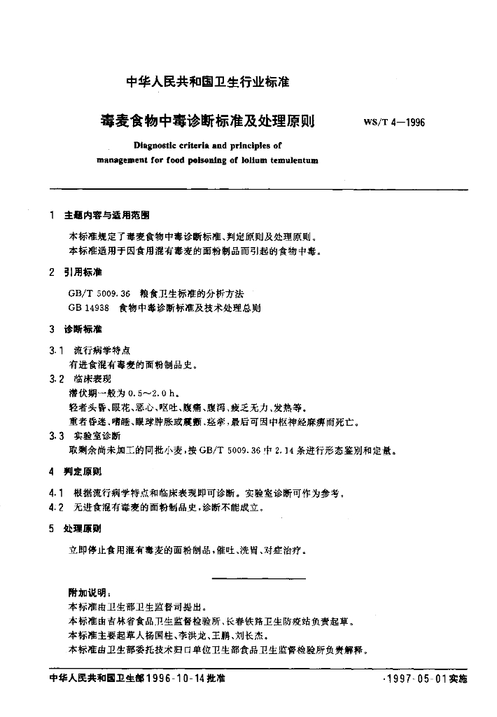 WS/T 3-1996 曼陀罗食物中毒诊断标准及处理原则