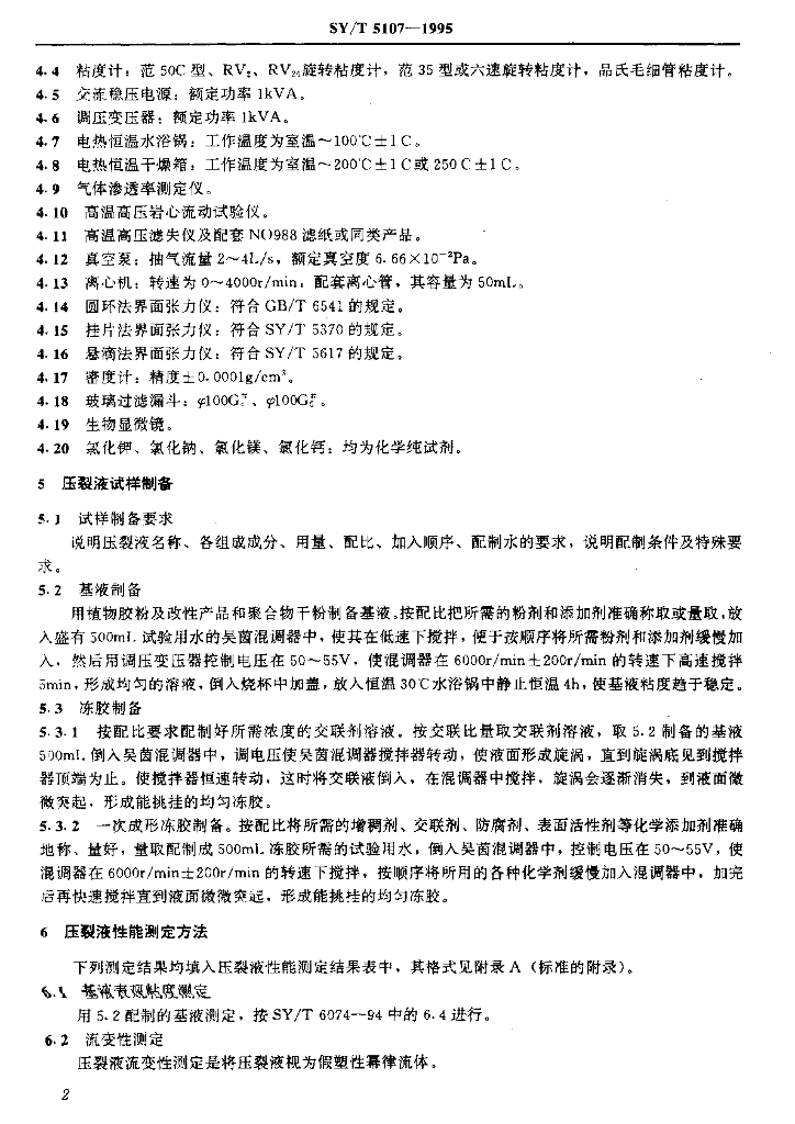 SY/T 5107-1995 水基压裂液性能评价方法