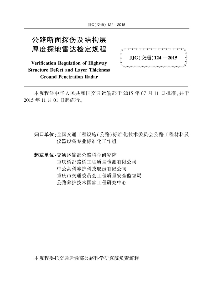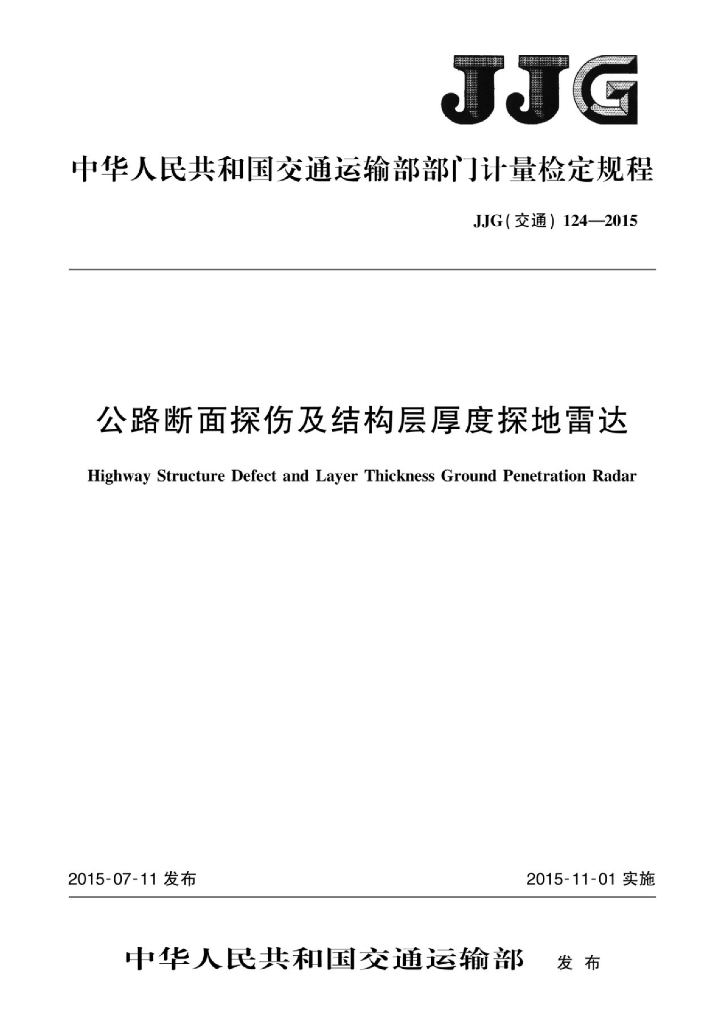 JJG(交通)124-2015 公路断面探伤及结构层厚度探地雷达