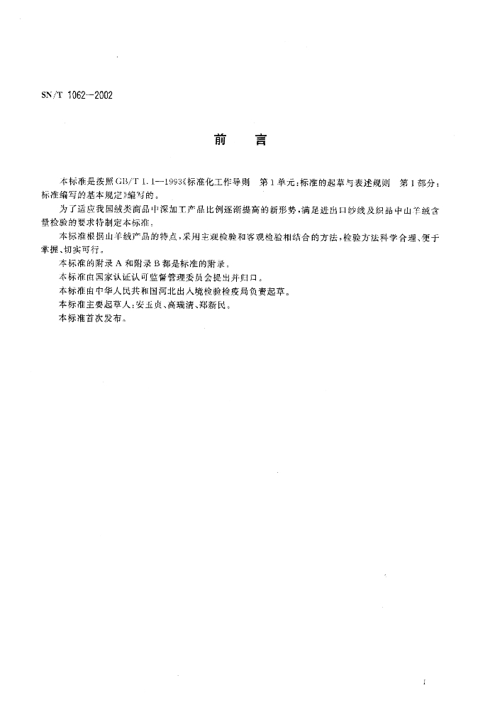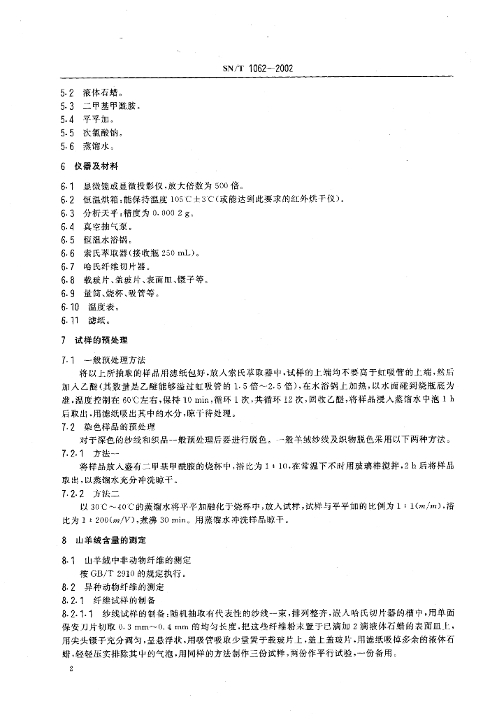 SN/T 1062-2002 进出口纱线及织品中山羊绒含量的检验方法