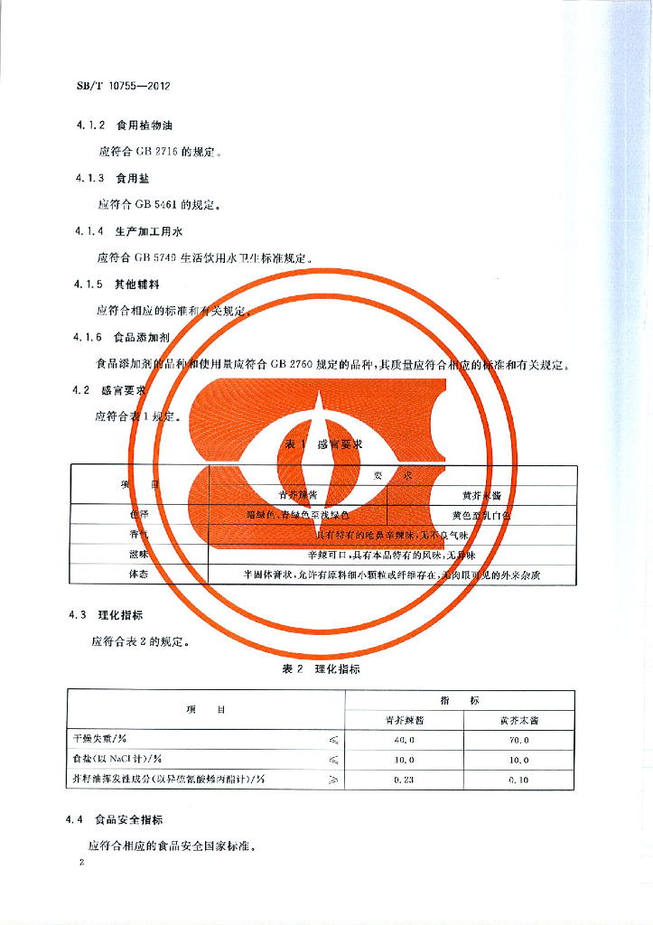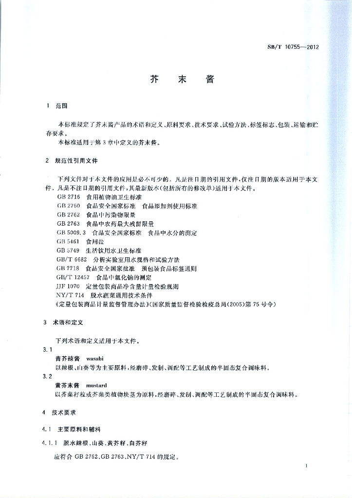 SB/T 10755-2012 芥末酱