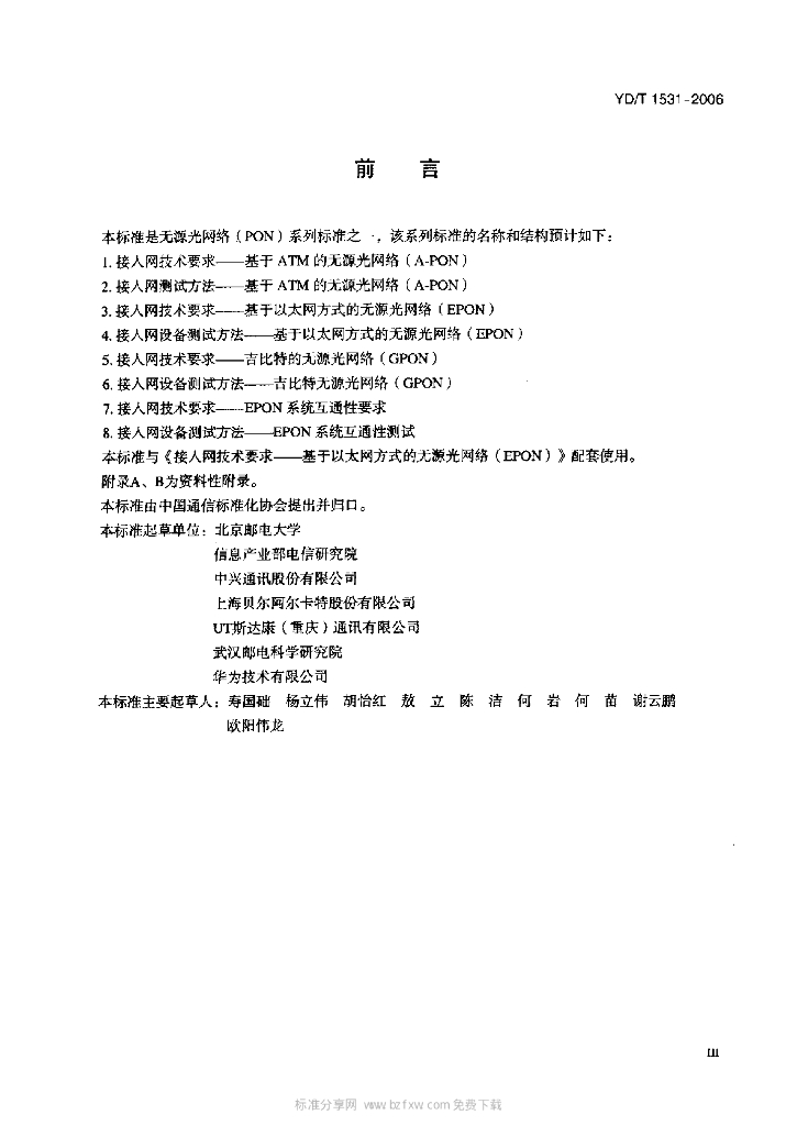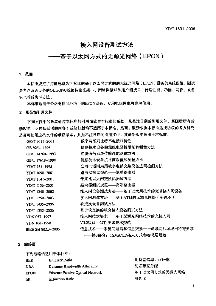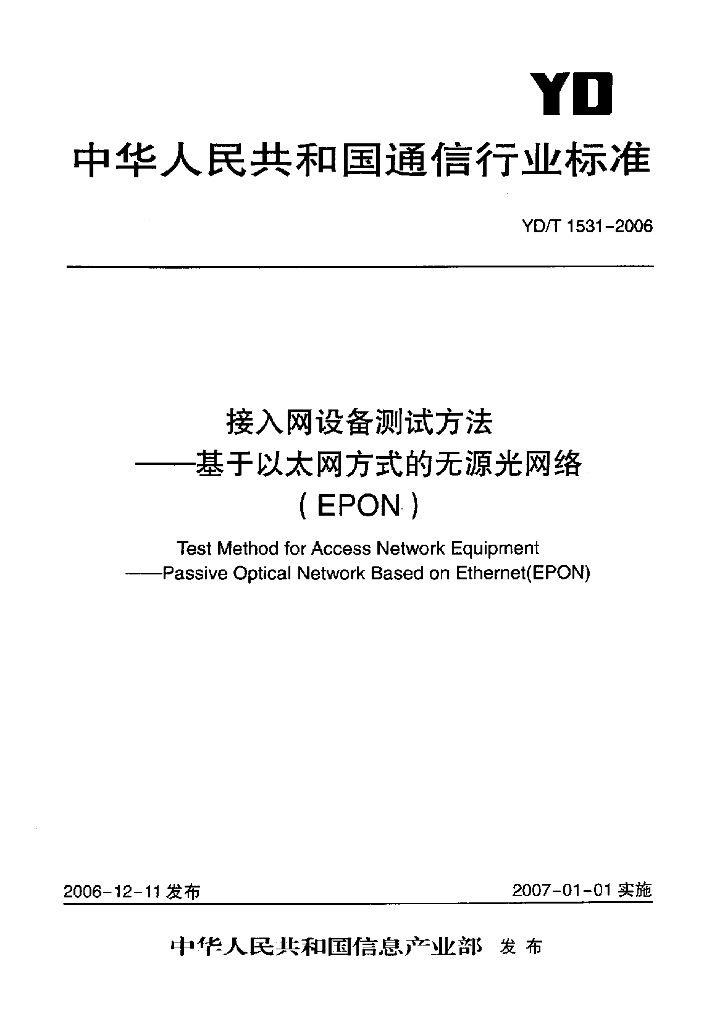 YD/T 1531-2006 接入网设备测试方法——基于以太网方式的无源光网络(EPON)