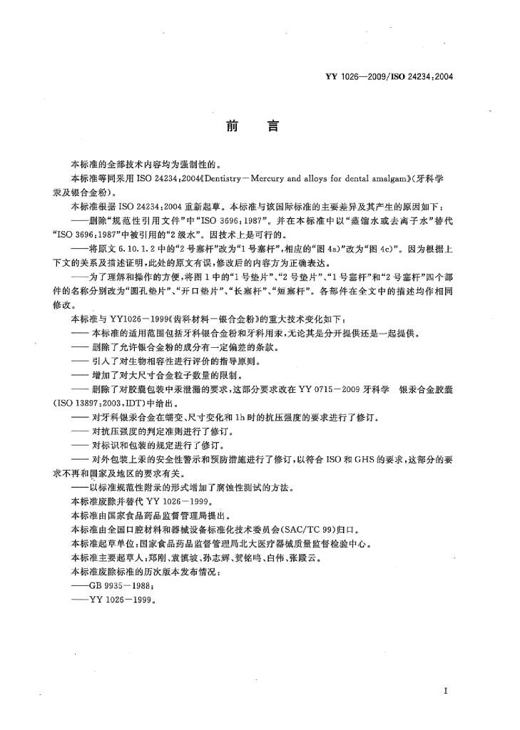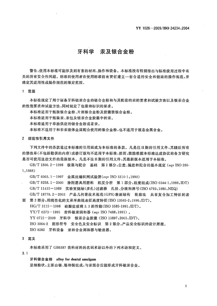 YY 1026-2009/ISO 24234 :2004 牙科学汞及银合金粉