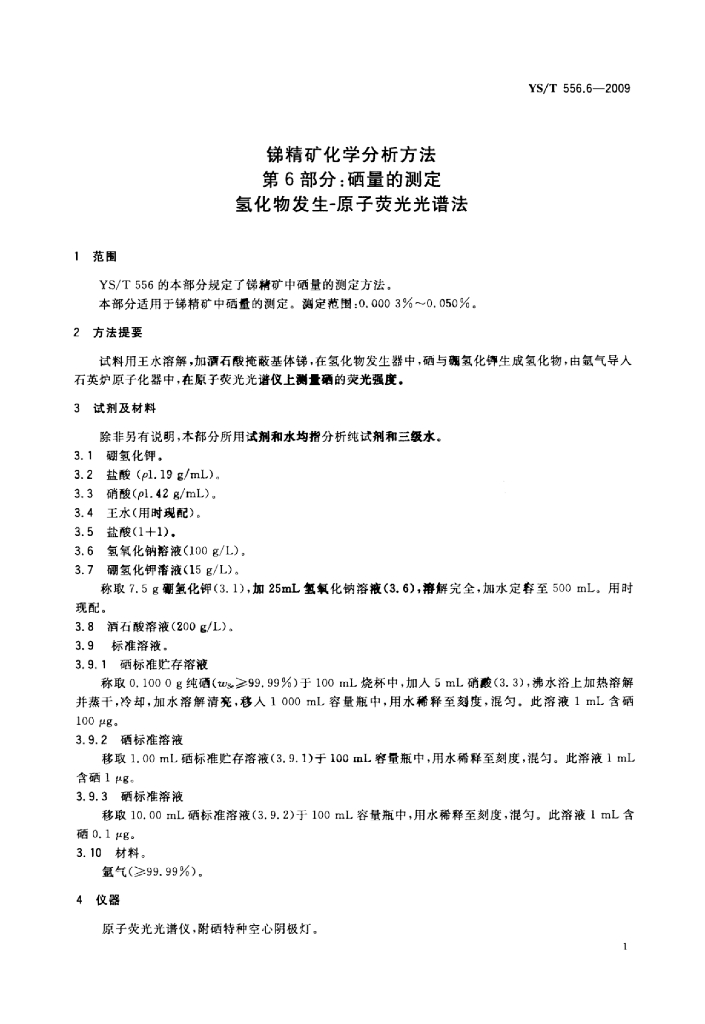YS/T 556.6-2009 锑精矿化学分析方法 第6部分:硒量的测定氢化物发生-原子荧光光谱法