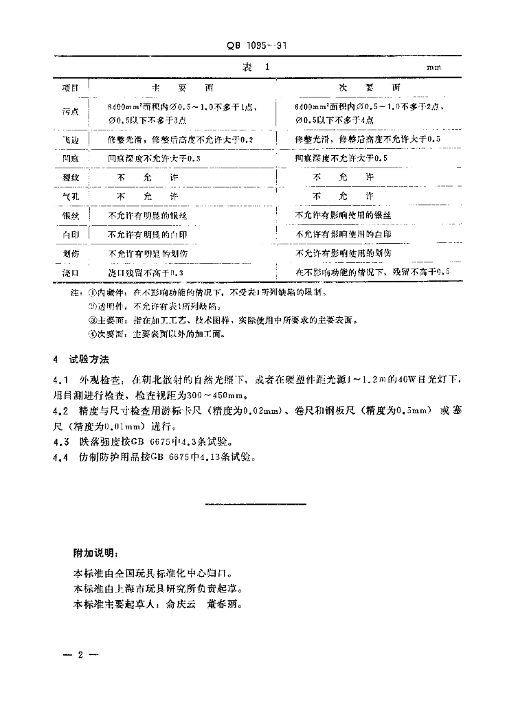 QB/T 1095-1991 玩具硬塑件通用技术条件