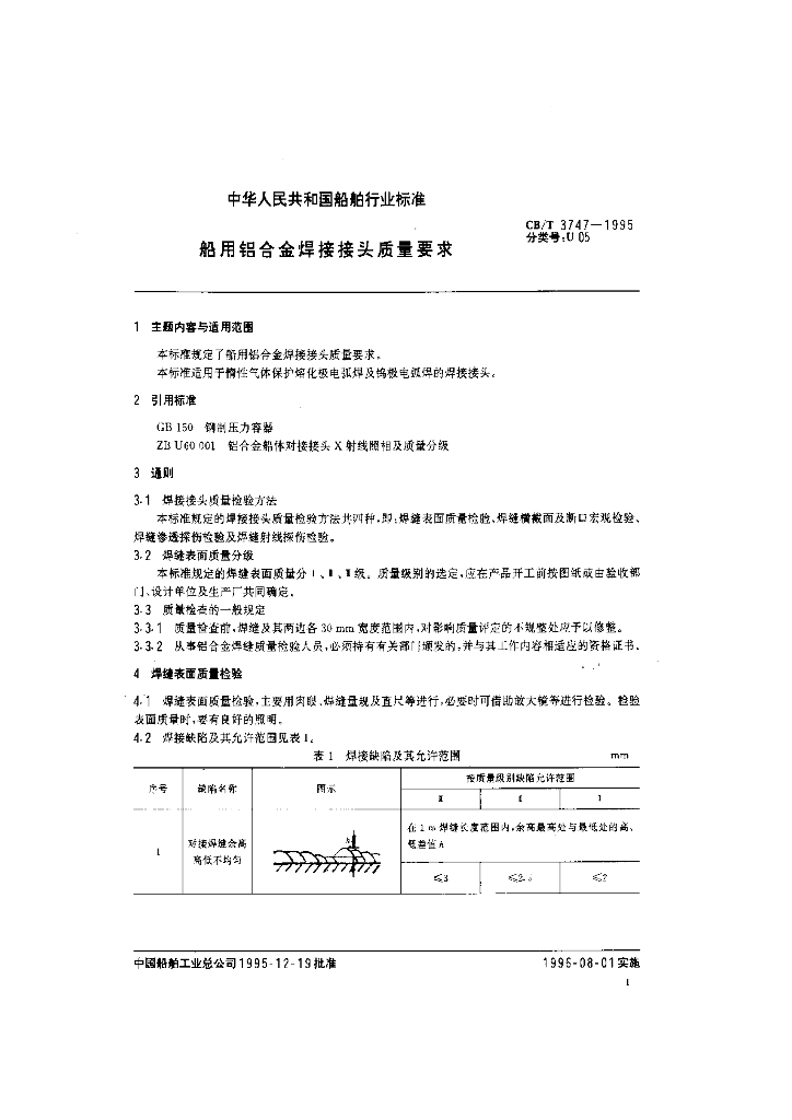 CB/T 3747-1995 船用铝合金焊接接头质量要求