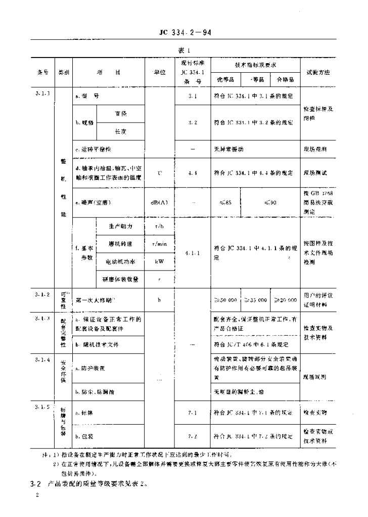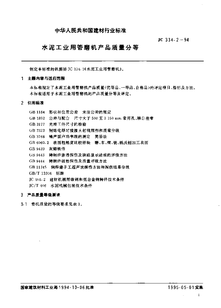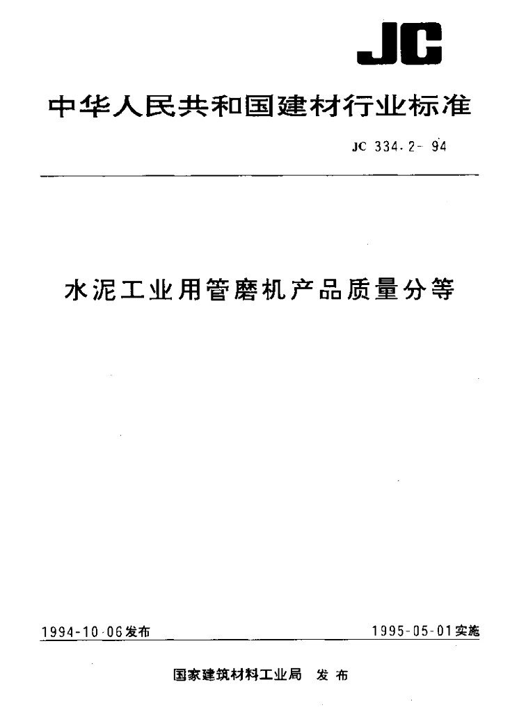 JC 334.2-1994 水泥工业用管磨机质量分等