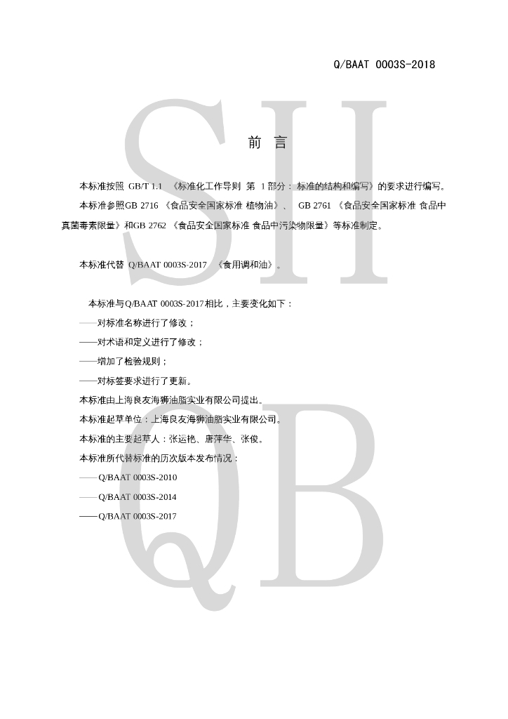 Q/BAAT 0003S-2018 食用植物调和油