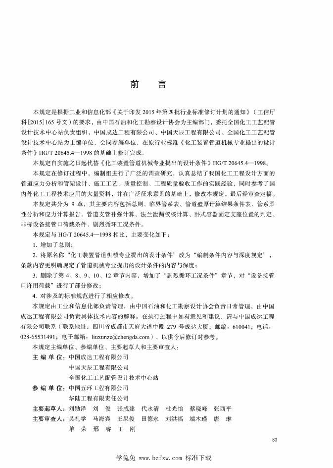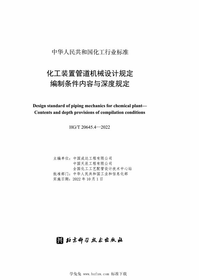 HG/T 20645.4-2022 化工装置管道机械设计规定 编制条件内容与深度规定